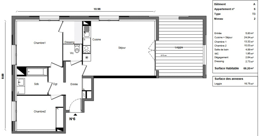 Toulouse (31400) APPARTEMENT T3 59 m² + GARAGE