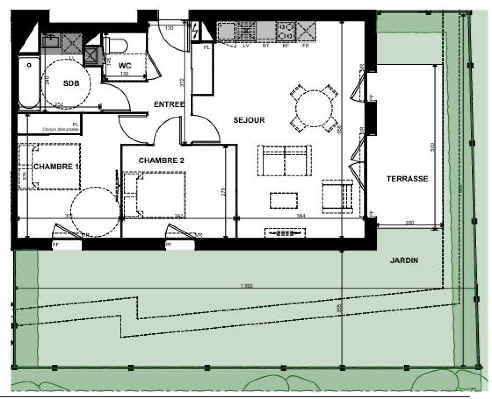 Il se compose d’un séjour lumineux donnant sur une grande terrasse de 10 m² et sur un jardin privatif de 54m², parfait pour profiter de l’extérieur.