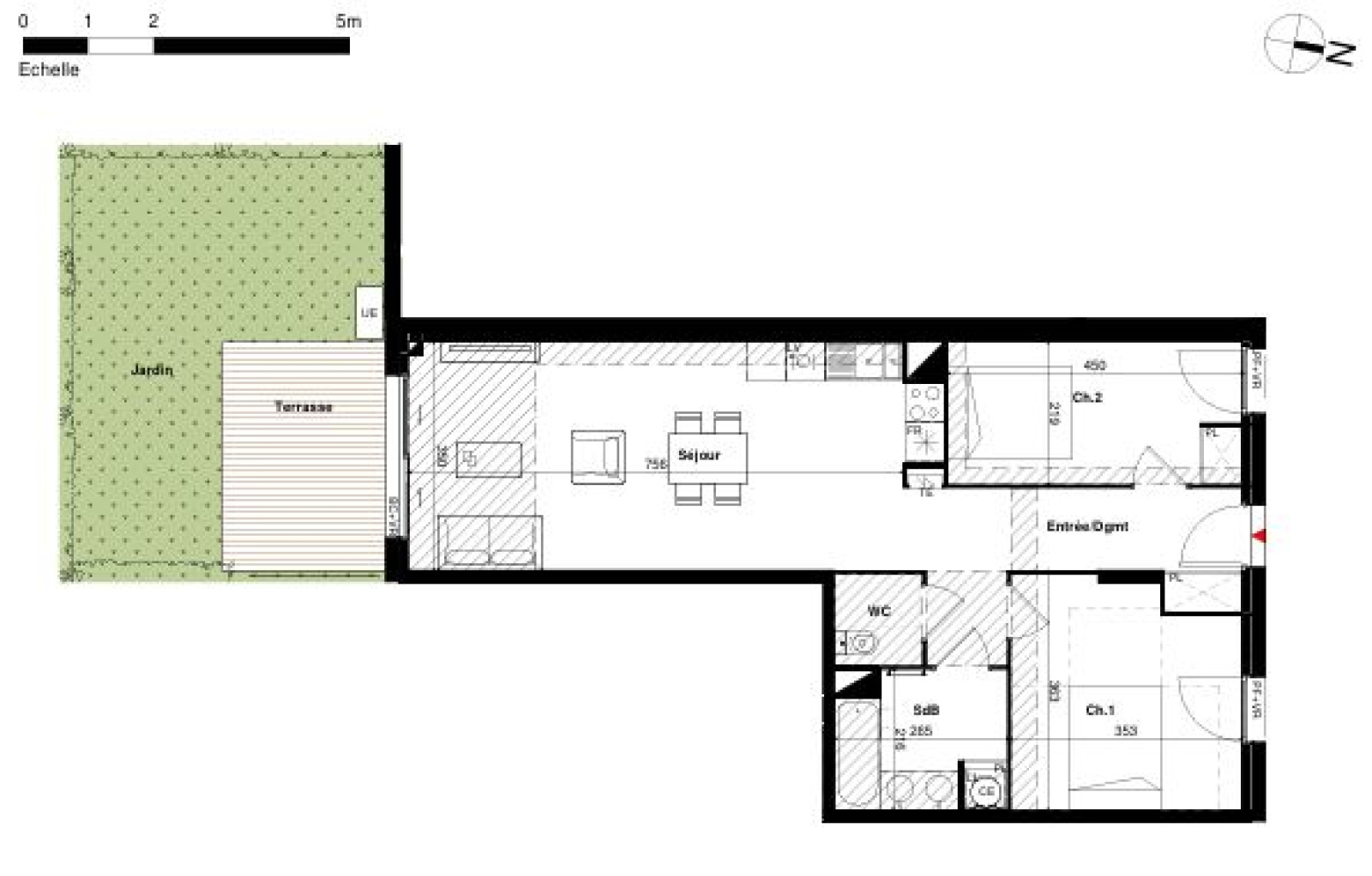 Vous apprécierez son séjour lumineux ouvrant sur un jardin privatif de 32.98 m², idéal pour profiter des beaux jours. Le bien inclut également deux places de parking.