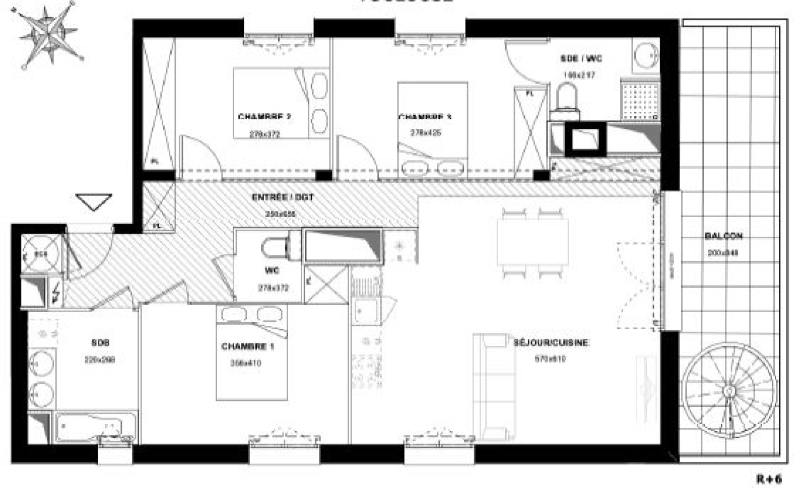 La pièce de vie, s’ouvre sur un balcon de 17 m², offrant un espace extérieur idéal pour se détendre. Les chambres sont séparées de l’espace de vie pour plus d’intimité, et l’ensemble bénéficie d’un aménagement moderne et fonctionnel.