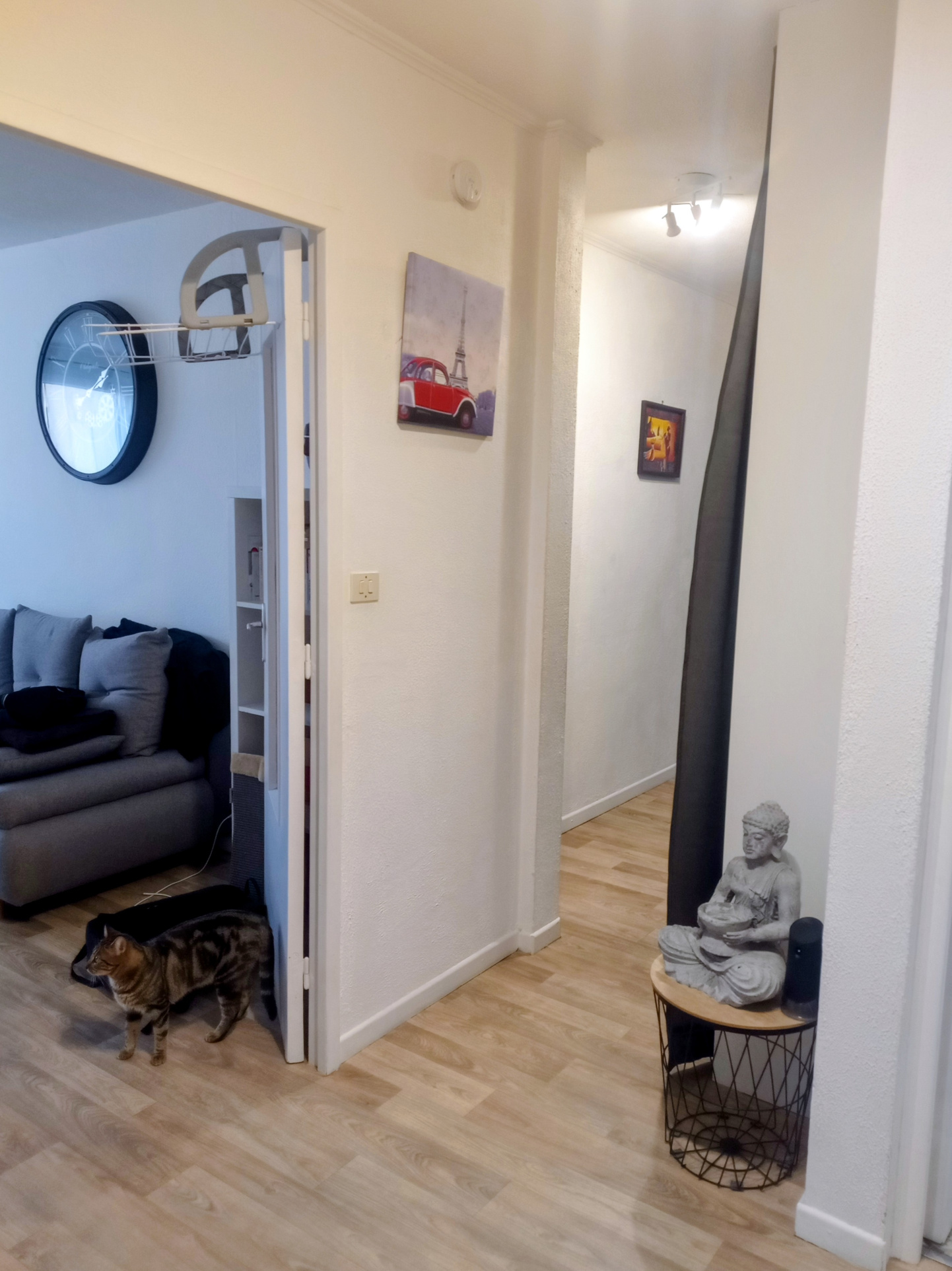 Le coin nuit comprend des rangements tout le long du couloir amenant aux deux chambres dont une avec coin bureau (env 10 et 17M2).