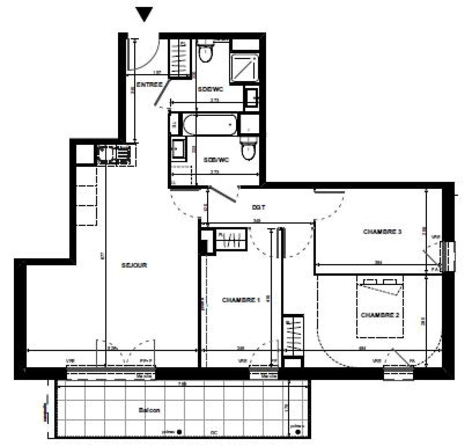 L’appartement dispose d’un séjour lumineux donnant sur un grand balcon de 13,38 m², parfait pour profiter d’un espace extérieur avec vue dégagée.