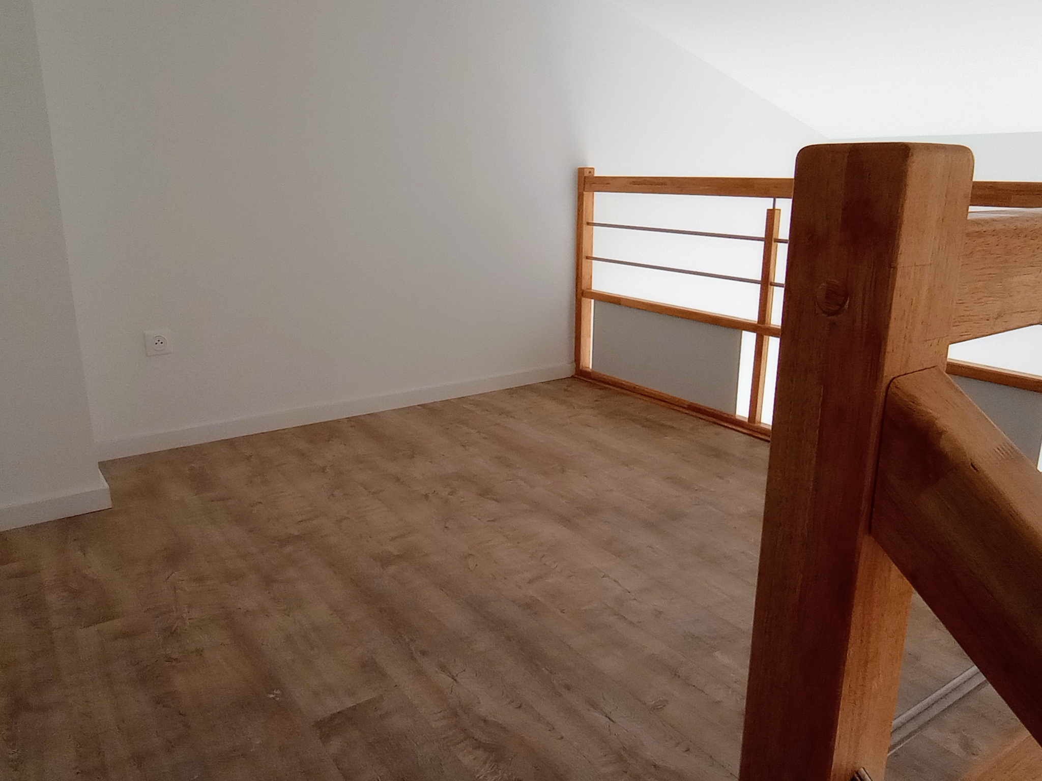 A l'étage, une seconde chambre de 14 M2 avec mezzanine vous attend, ainsi qu'un palier pouvant faire office de bureau ou de salle de jeux